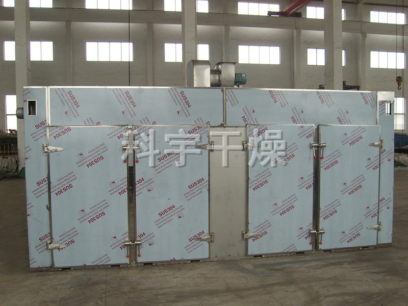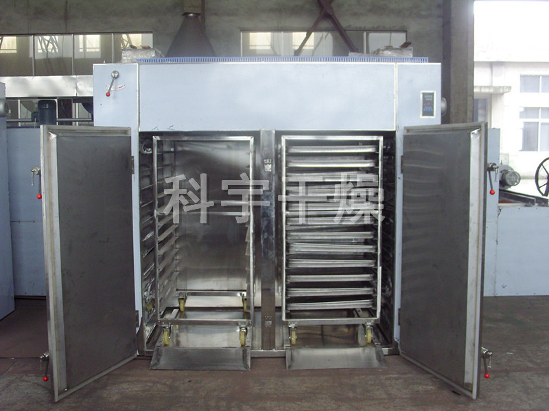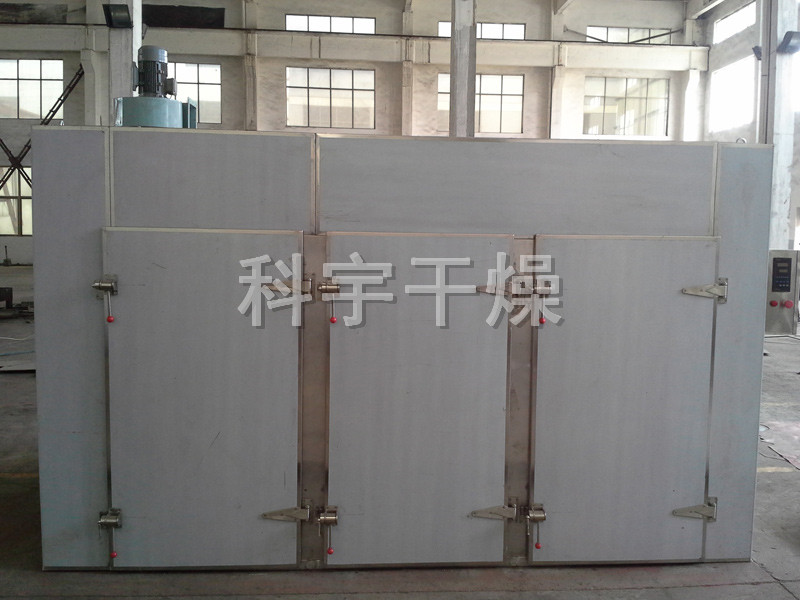 大部分熱風在箱內循環,熱效率高,節約能源。利用強制通風作用,箱內設有可調式分風板,物料干燥均勻,熱源可采用蒸汽、熱水、電、遠紅外,選擇廣泛。整機噪音小,運轉平衡。溫度自控,安裝維修方便。適用范圍廣,可干燥各種物料,是通用干燥設備。